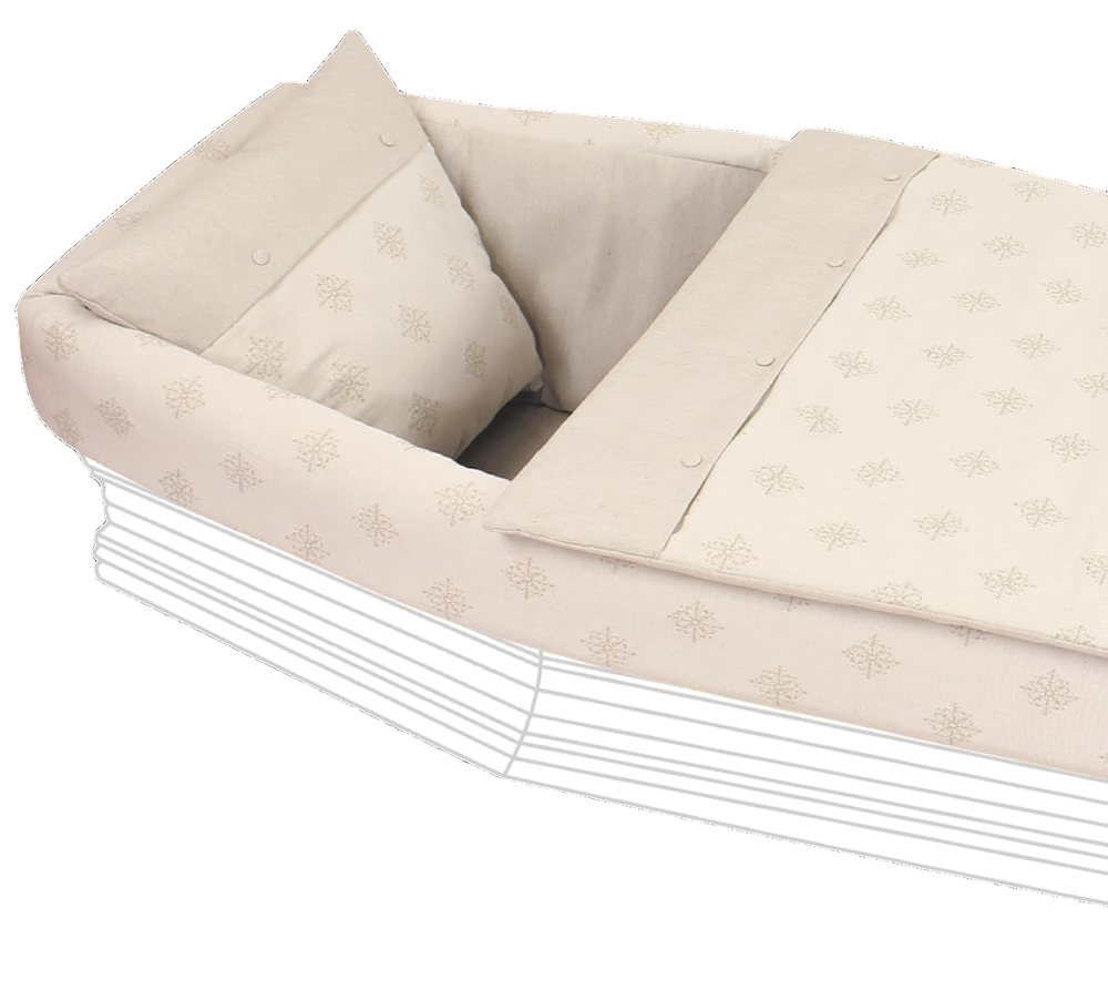 Découvrez l’ensemble de nos capitons funéraires (voir les disponibilités en agence). Choisissez un modèle qui viendra personnaliser les parois du cercueil.